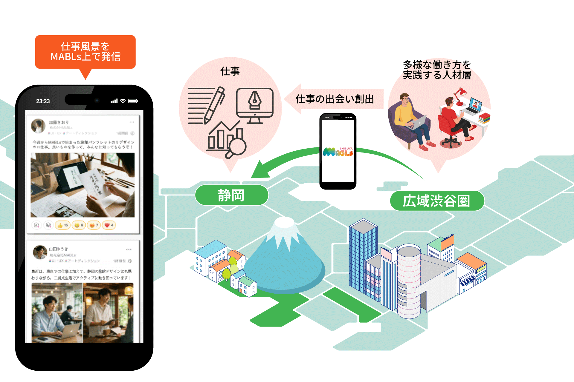 東急不動産ReINN東急不動産・静岡県・JR東海・ReINNの 4者が、静岡県の二拠点生活推進に向け連携 東急不動産が提供する「MABLs」が広域渋谷圏での情報発信と静岡県内での仕事や人との出会いを組み合わせたモデルを新たに構築。費用負担軽減策と合わせて二拠点生活を推進 PDF:813.0 KB